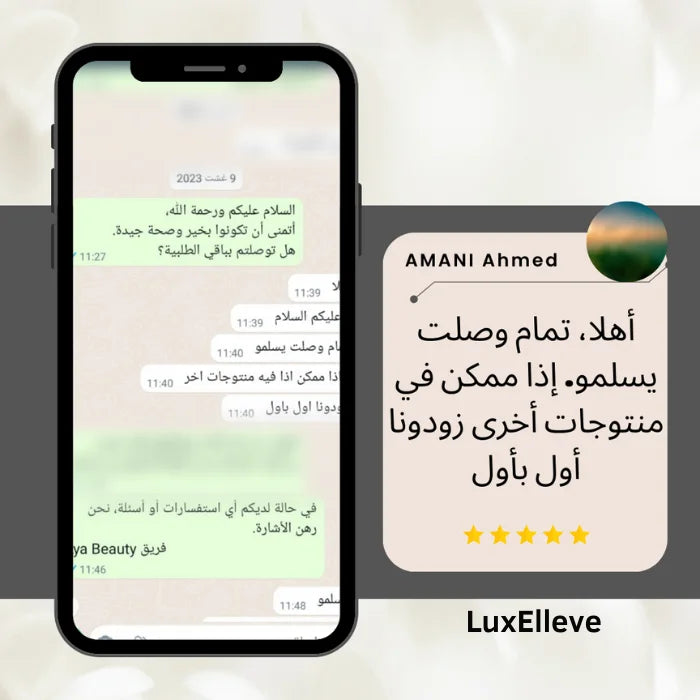 جميع منتجاتنا أصلية ومجربة بعناية. إذا لم تحصلي على النتيجة التي وعدناكِ بها، أعيدي المنتج خلال 30 يوم واسترجعي نقودك بالكامل!